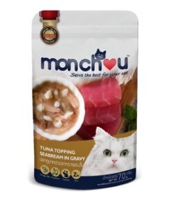 Monchou Tuna Topping Seabream in Gravy มองชู อาหารเปียกแมว ปลาทูน่าหน้าปลาทรายแดงในน้ำเกรวี่