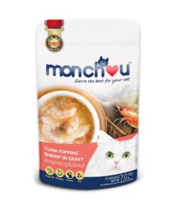 Monchou Tuna Topping Shrimp in Gravy มองชู อาหารเปียกแมว ปลาทูน่าหน้ากุ้งในน้ำเกรวี่
