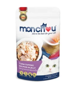 Monchou Tuna Topping Salmon in Jelly มองชู อาหารเปียกแมว ปลาทูน่าหน้าปลาแซลมอนในเยลลี่